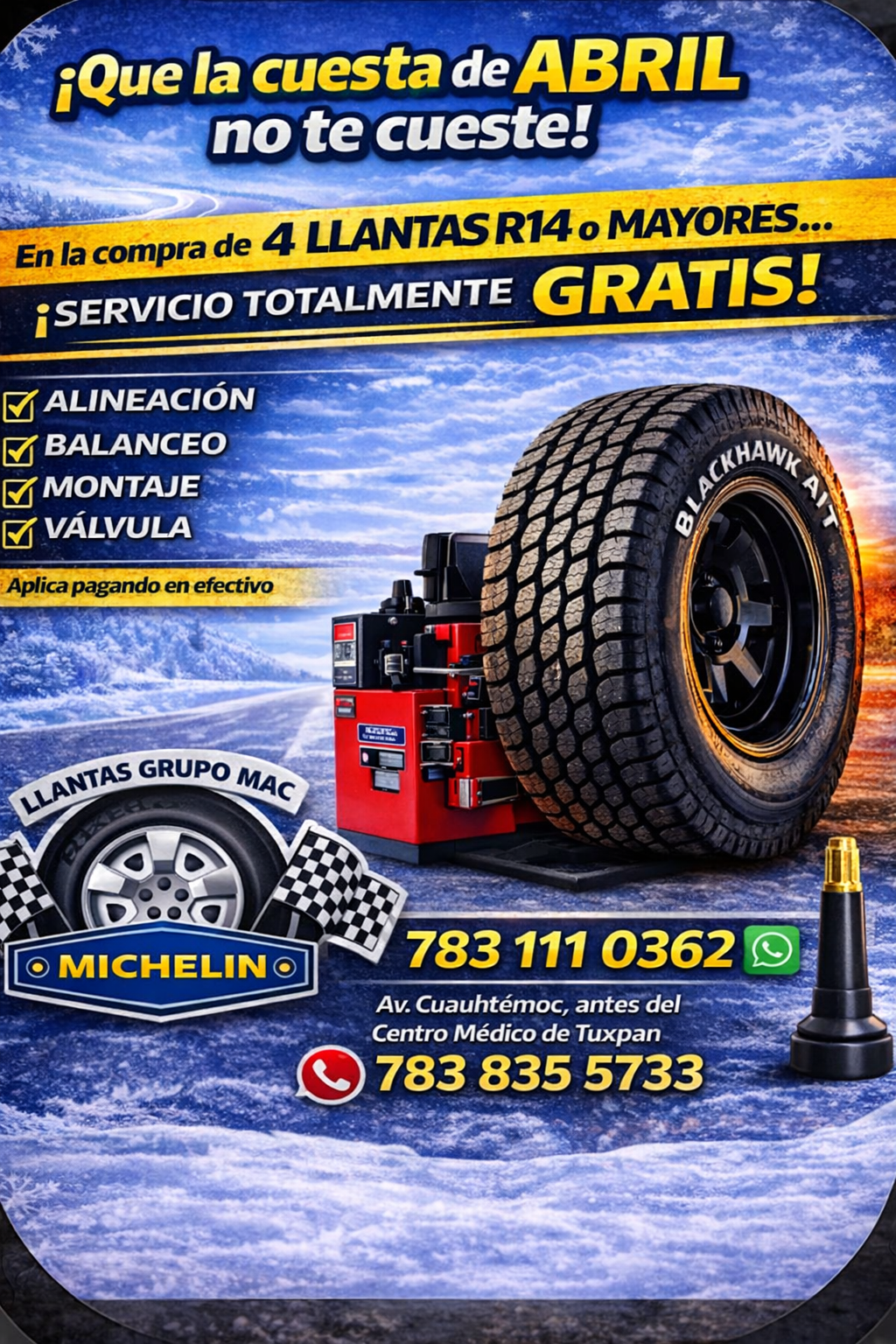 En MAC Grupo automotriz , somos especialistas en llantas y servicios automotrices en Tuxpan.